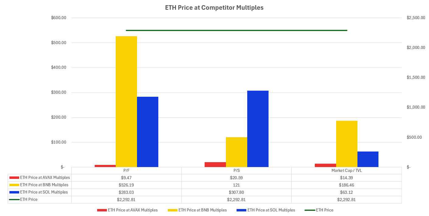 Yet we find Ethereum overvalued. The fundamental economics of Ethereum remain valid, so assessment demands further investigation. For this, relative valuation is appropriate.