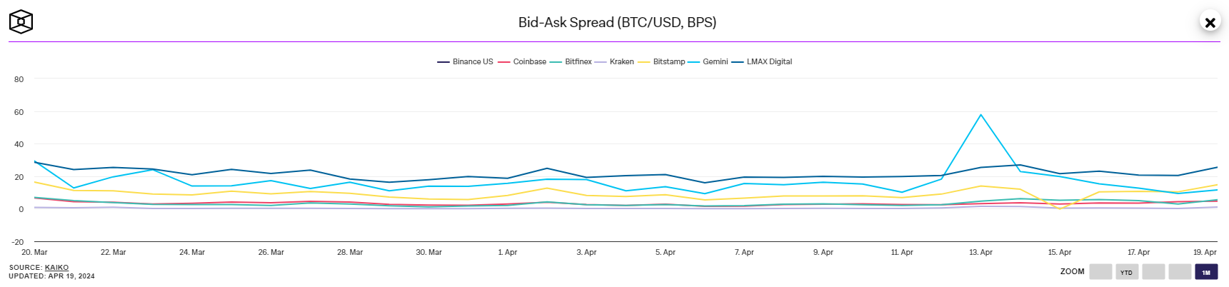 Liquidity is important to institutions when assessing asset allocation. Measured by BTC-US dollar bid-ask spreads, spreads at the largest trading venues globally are between 0.0001% (Kraken) and 0.019% (Coinbase), implying very strong liquidity for BTC. By comparison, the largest and most liquid ETF in the world – SPDR S&P 500 ETF Trust – has a mean spread of 0.0032% and the average of the 2,900 ETPs listed on US markets is 0.52%.