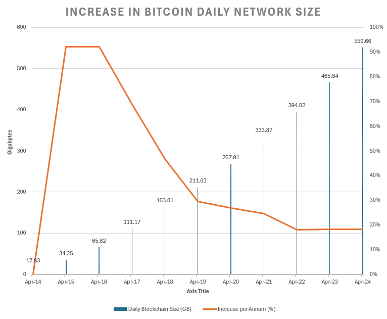 | Year | Daily Blockchain Size (GB) | Increase Per Annum (%) |