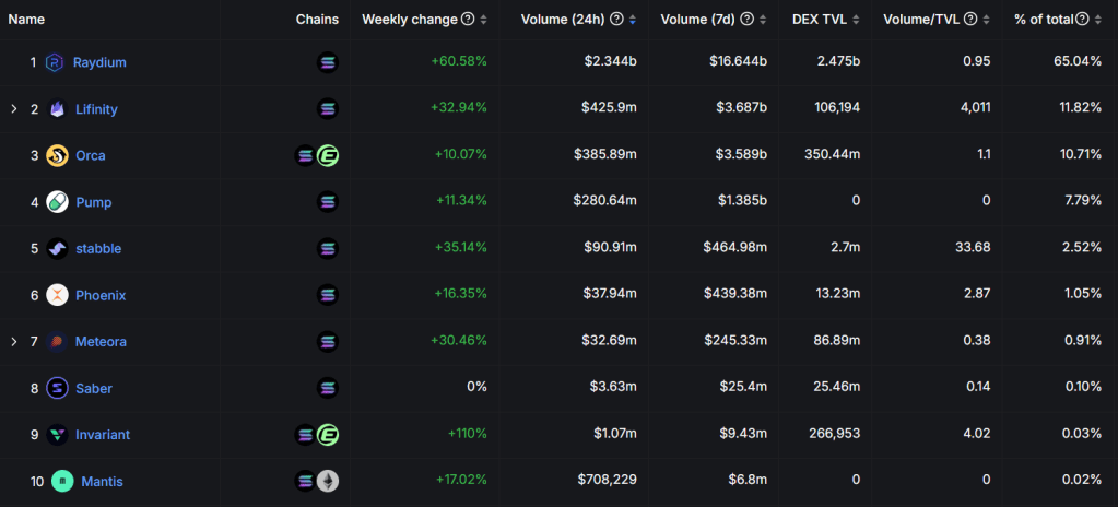 | Solana | $115.38mm | $1.40bn (+13.7%) |